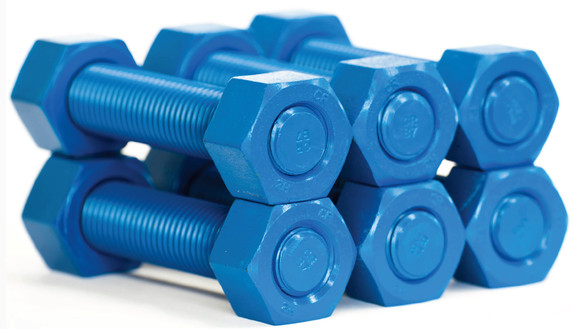 Aplicamos recubrimiento Xylan PTFE Fluoropolymer en espárragos y tuercas Oil & Gas, utilizados en plataformas marítimas y armados de tubería con brida.